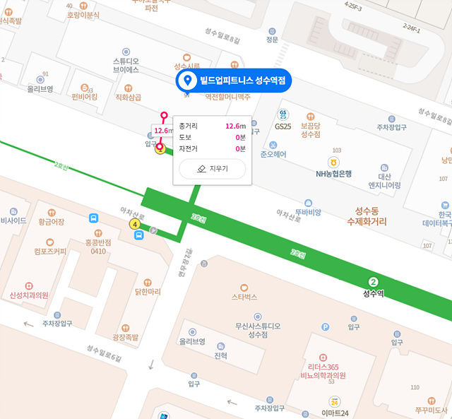 빌드업피트니스 성수역점은 이름에서 보이듯이 성수역 1번 출구에서 13m 정도 거리에 위치해 있고, 3층! 지하가 아닌 지상에 위치한 헬스장입니다.