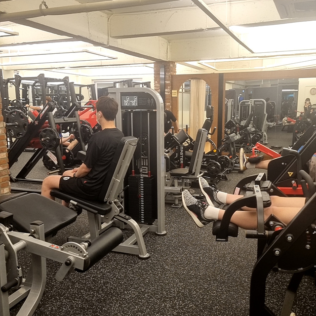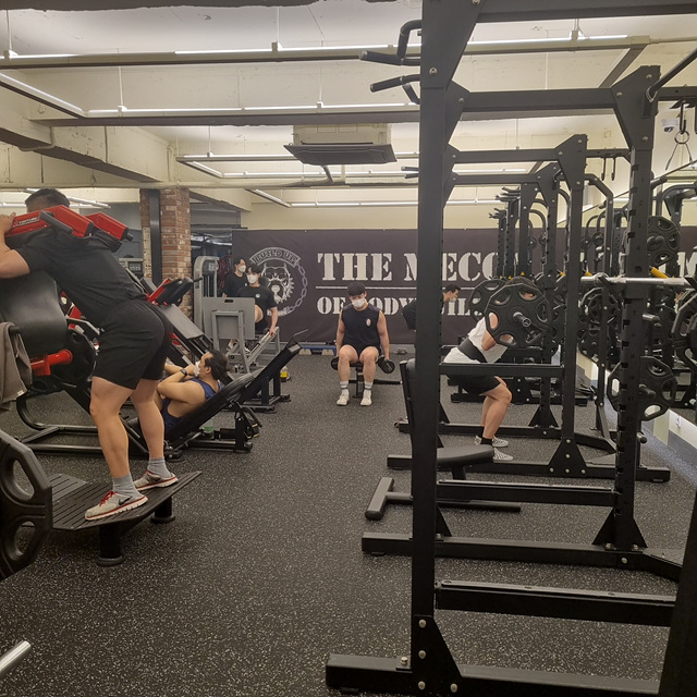 좌측엔 스쾃, 데드리프트 등을 할 수 있는 랙과, 스미스머신, V-squrt, 레그프레스 등이 있고,