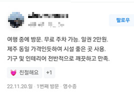 전체적으로 깔끔한 인테리어라 다음에 제주도 출장 오면 또 방문할 것 같고요. 재방문의사 100%!